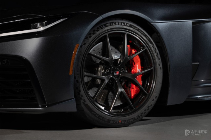 官图展示车型采用20英寸5辐式高性能轮辋,轮毂标识为丰田高性能品牌Gazoo Racing专属Logo。刹车卡钳为丰田GR定制Brembo多活塞卡钳,搭配大尺寸碳陶材质刹车盘,预计刹车性能卓越。